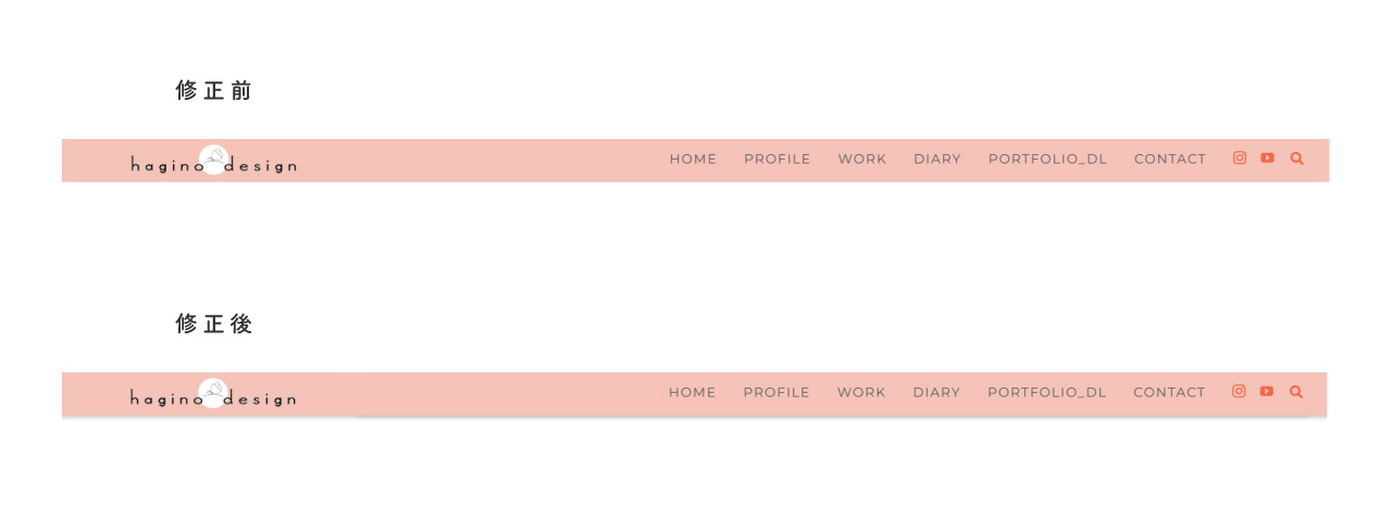 【box-shadow】を使用して、メニューの下側にだけ影を付けることに挑戦しました。【box-shadow】の詳しい説明は記事下部の参考サイトをご覧ください。