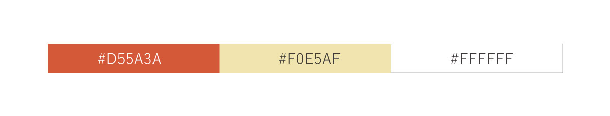 メインビジュアルにたい焼き屋さんのロゴを使用。コーポレートカラーである赤色(#D55A3A)を背景色に使用しました。